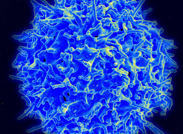 Skenovací elektronový mikrograf lidského lymfocytu (také nazývaný T buňka) z imunitního systému zdravého dárce. Kredit: Niaid