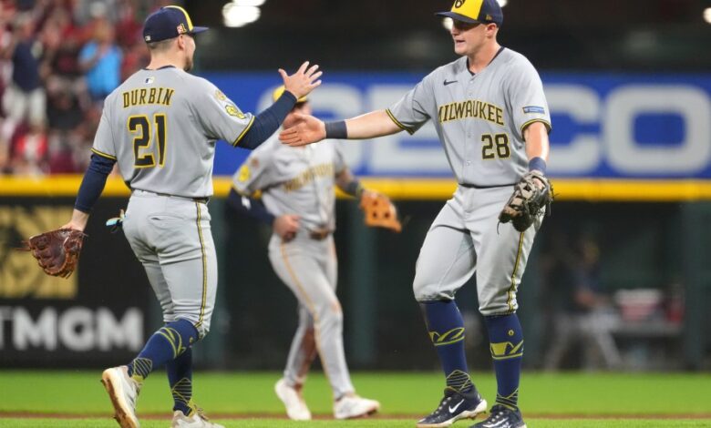 Reds pronásledoval Brewers Rookie Jacob Misiorowski-dělal svůj první start od 28. července-se sedmiko-běhovou sedmou směnou, aby se ujal vedení 8-1.