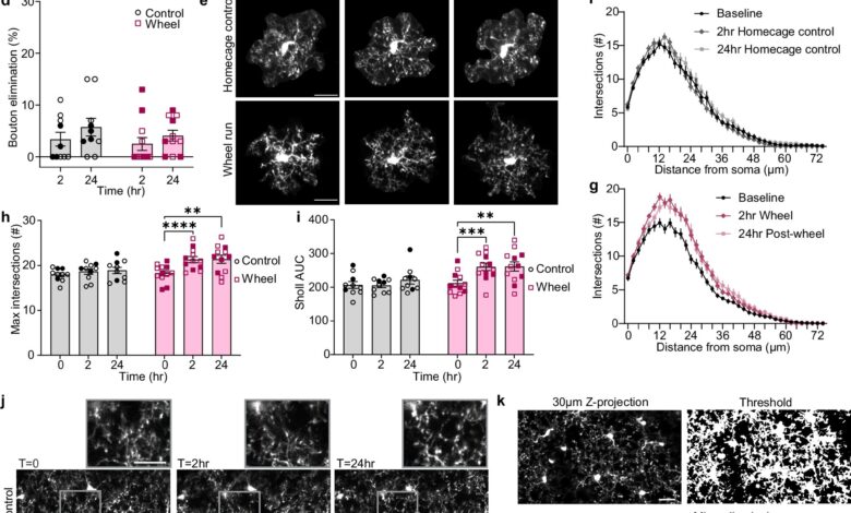 Adolescentní běh kol podporuje tvorbu DA Bouton a vyrůstání mikrogliálního procesu. Kredit: Přírodní komunikace (2025). Dva: 10.1038/S41467-025-63314-4