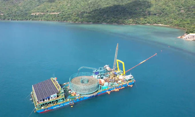 | Konstrukce ponorkového kabelu z Can Tho City na ostrov Con Dao. Foto od vnexpress/viet ha |