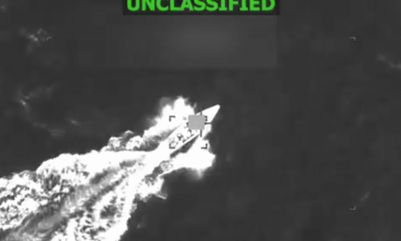 Hegseth, který uvedl, že plavidlo bylo napadeno v mezinárodních vodách, zveřejnil 20sekundový videoklip, označený jako neklasifikovaný, zobrazující loď zasaženou municí a explozi, když se řítila vodou.