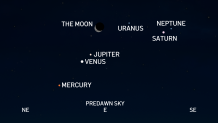 Pro čtyři po sobě jdoucí dopoledne od 17. do 20. srpna vytvoří Merkur, Venuše, Jupiter, Uran, Saturn a Neptun na východní obloze před úsvitem půvabný oblouk. K pohledu na Neptun a Uran budete potřebovat dalekohled.
