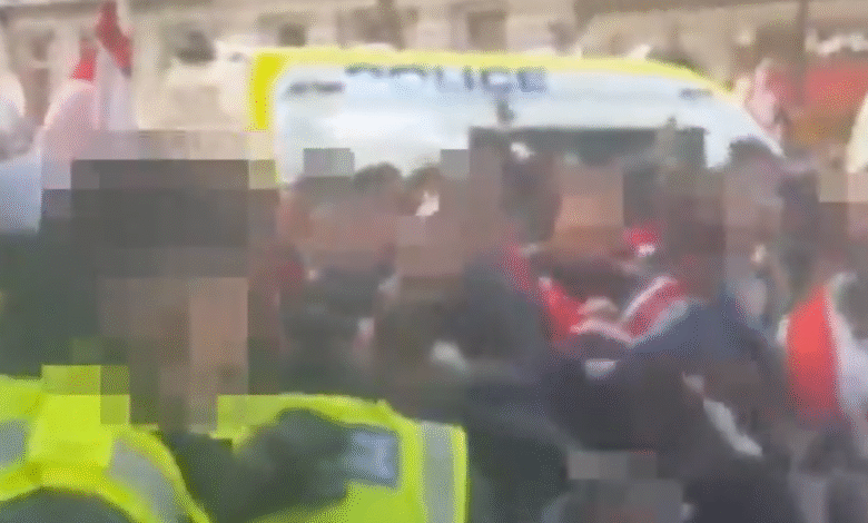 Policie byla „kopána a prorazena“ s desítkami zraněnými, když se až 150 000 lidí shromáždilo pro rally Tommyho Robinsona v centru Londýna s některými důstojníky, kteří zůstali s „zlomeným zubům, možným zlomeným nosem, otřesem, prolabovaným diskem a zraněním hlavy“.
