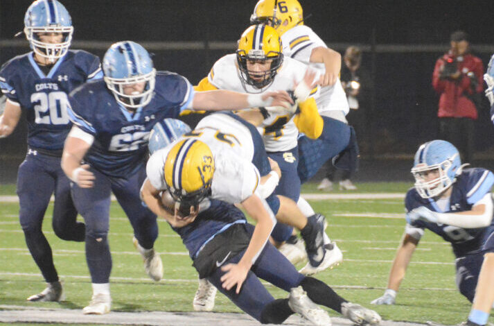 Třetí nasazení Colts (10-2) využili pěti obratů v prvním poločase z č. 11 Clay County a dotáhli k vítězství 69-7 před velkým publikem shromážděným na George Byrer Field ve Freedom Bank Park.