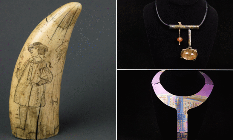 Mezi odebranými kusy byl nákrčník vyrobený zesnulou umělkyní Florence Renikoff, úkoly scrimshaw mrož a indiánské koše.