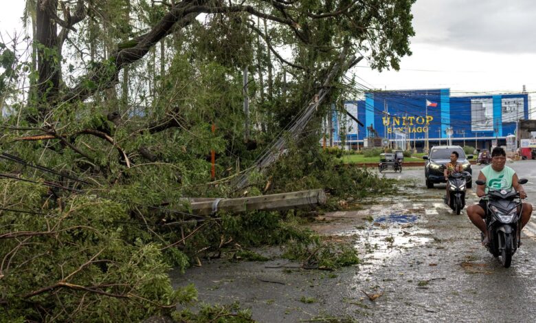 Ve východním pobřežním městě Dipaculao, kde stále nefungovala elektřina, záběry sdílené místní hasičskou agenturou ukázaly, jak se posádky pomocí seker prosekávají obrovské hromady trosek – včetně pokácených stromů a celých plechových střech – když uvolňují vozovku.
