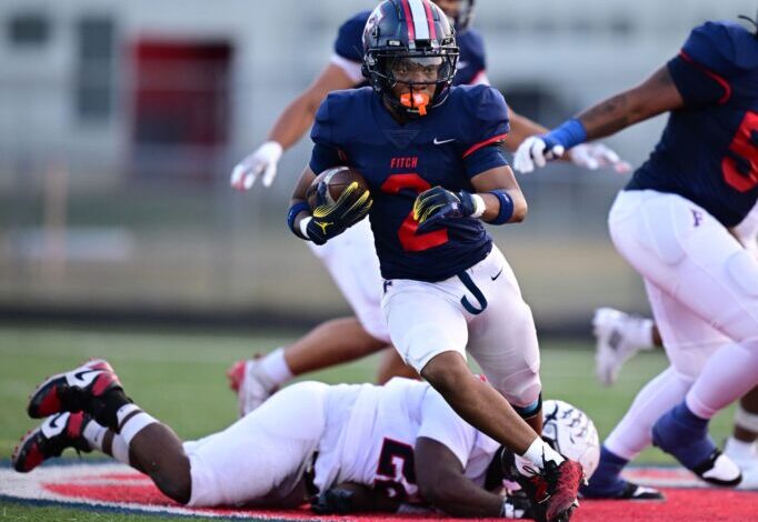 Korespondent Photo / David Dermer. Fitch senior běží zpět Junie Higgs nese míč poté, co v pátek večer v Austintownu unikl obránce Buchtel.