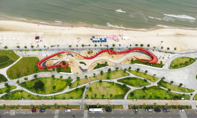 Položky parku na zadní pláži se chystají dokončit po téměř roce výstavby. Foto: Truong Ha