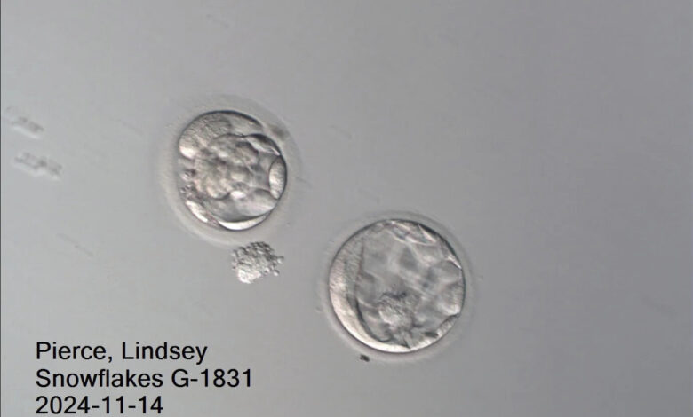 Tento obrázek, který poskytli ReJoice a John David Gordon, ukazuje dvě embrya 14. listopadu 2024, která přežila zamrzlá po dobu třiceti let. Kredit: Radujte se a John David Gordon přes AP