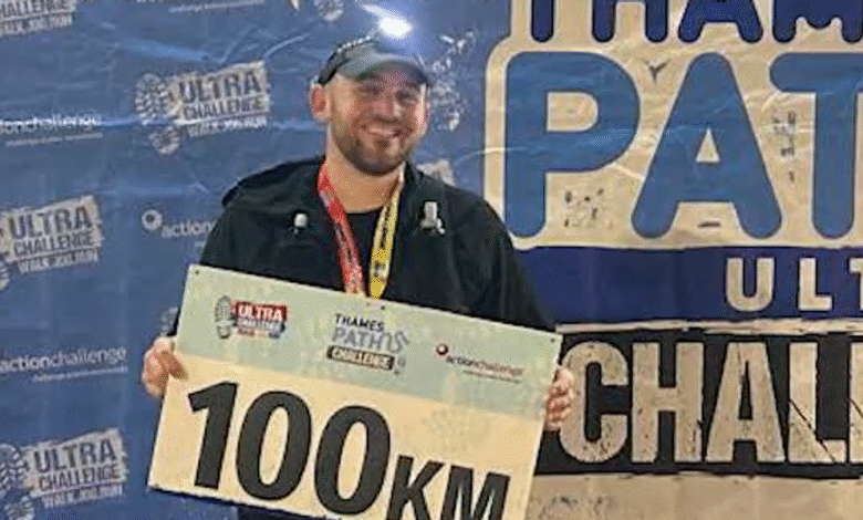 Hrdinský charitativní bojovník slaví po dokončení úžasných pěti ultra maratonů, aby získal peníze na charitu.