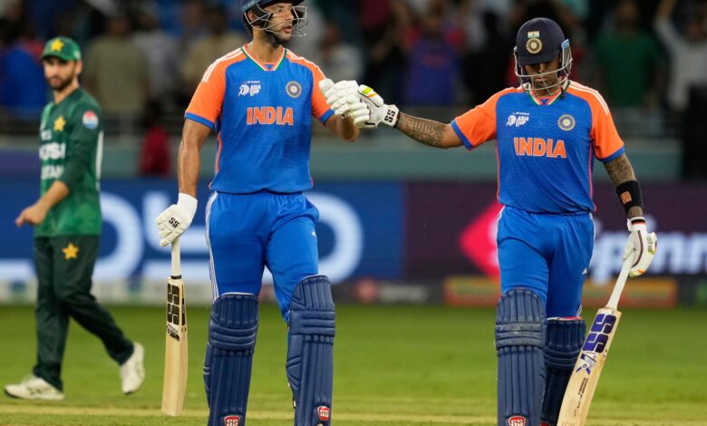 Yadav, kdo zasáhnout vítězné běhy Pro Indii odešel z pole spolu s partnerem pálkování Shivam Dube, aniž by se přiblížil k pákistánskému kapitánovi a týmu pro tradiční handshake po zápase.