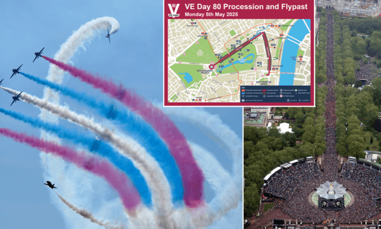 Mapované: Kde můžete sledovat průvod VE DAY? Davy mohou zarovnat nákupní centrum na oslavu 80 let od vítězství v Evropě