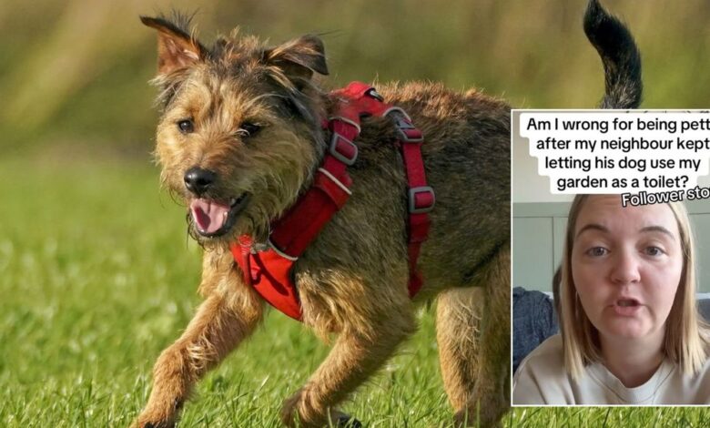 Skromná předzahrádka ženy s úhlednou trávou a pečlivě udržovanými rostlinami se stala oblíbeným záchodovým místem pro psa.