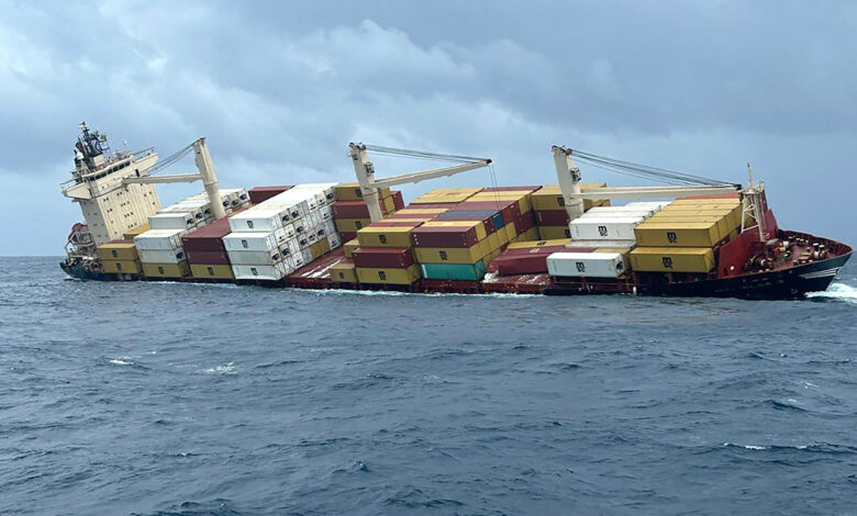Video ukazuje nákladní loď převrhnutí pobřeží Keraly v Indii, prosakující ropu a nebezpečné materiály