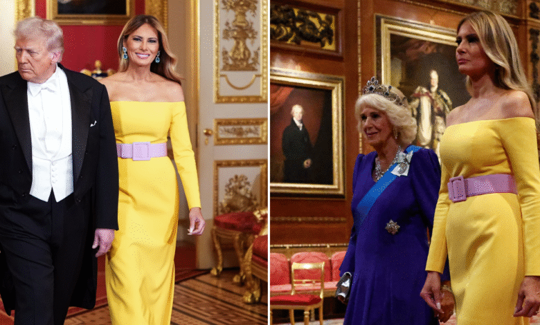 První dáma Melania Trump dodala podpisovou sofistikovanost, když se připojila k prezidentovi Donaldovi Trumpovi na hradě Windsor pro třpytivý státní banket pořádaný králem Charlesem a královnou Camilla.
