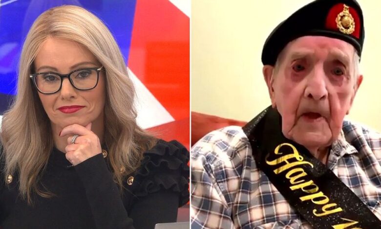 Michelle Dewberryovou přemohly emoce v přímém přenosu poté, co 100letý veterán Jim Gettings poděkoval hvězdě GB News za to, že ho „poslouchala“.