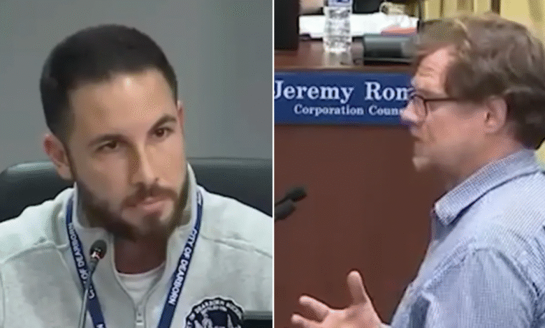 K výměně došlo minulý týden během vyhřívané rady v Dearbornu v Michiganu.