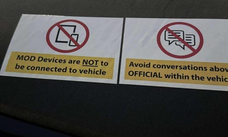 Bylo odhaleno, že ministerstvo obrany muselo umístit varovné štítky do svého vozového parku elektrických vozidel, aby zabránilo personálu diskutovat o citlivých záležitostech uvnitř.