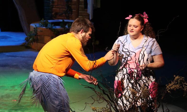 • Terry Symonette, druhák premed biologie, jako Jemilla a Moore společně vystupují během finále „Firebringer“. Hudební komedie uzavřela podzimní divadelní sezónu Washburn University.