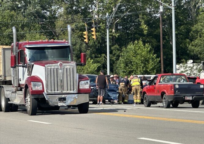 Pracovníci EMS Randolph County EMS přesunují osobu na nosítka poté, co se v pondělí odpoledne zasáhl návěs na SUV na křižovatce Walmart na Beverly Five-Lane v Elkins. Státní policie Západní Virginie, šerifská kancelář okresu Randolph, policejní oddělení Elkins a hasičský sbor Elkins reagovaly na nehodu, což zpomalilo provoz na pěti pruhu na procházení.