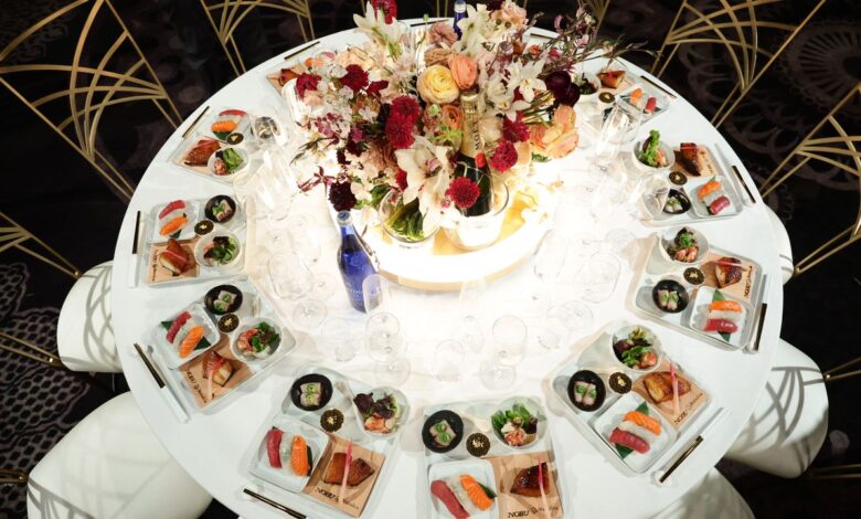 Ano, uprostřed všech celebrit a módy, vlákno věnované večeři předávání Zlatých glóbů šéfkuchařem Nobu Matsuhisa měl svůj vlastní zvýraznění na X po příspěvek s fotografií menu z The New York Times‚ Kyle Buchanan vzlétl. Abychom byli spravedliví, bylo to bohaté: obsahovalo kaviárový šálek, humří salát s pikantním citronovým dresinkem, lososové nigiri, tuňákové nigiri a Nobuovu slavnou miso černou tresku. A abychom byli spravedliví, v dohledu nebyl žádný sacharid – proteinový talíř pro éru Ozempic. I když rýži lze najít i jinde: Další fotografie z Buchananu ukazovaly výklenek à la carte sushi a pikantní tuňákovou křupavou rýži v The Beverly Hilton. („Způsob, jakým by mě odtamtud museli odvézt,“ tweetoval jeden uživatel.)