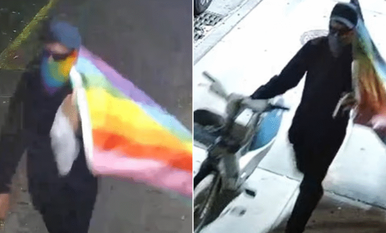 „Antikřesťanský“ vandal byl viděn, jak maže „hesla o zločinech z nenávisti“ napříč americkými kostely, zatímco je zahalený vlajkou Pride.