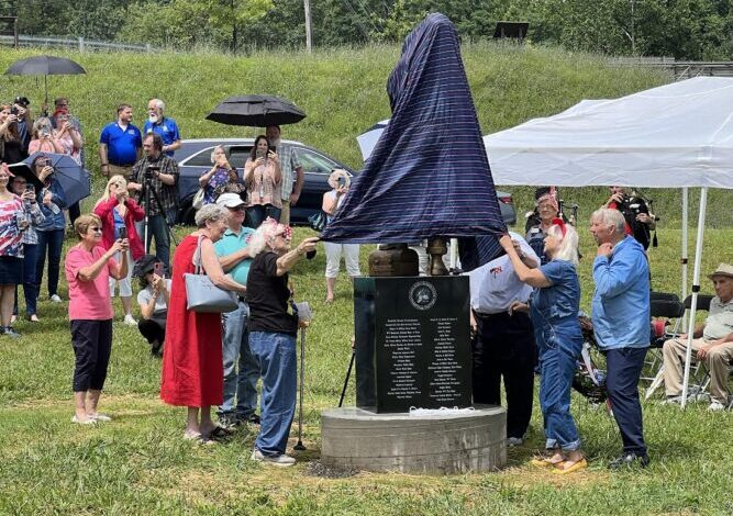 Inter-horolezační fotografie Edgara Kelleyho se ukázala velký dav pro odhalení sochy Rosie The Riveter v památkovém parku All-Veterans v Elkins v pondělí odpoledne. Inter-horana zveřejní celý příběh o odhalení, s fotografiemi, online později dnes.