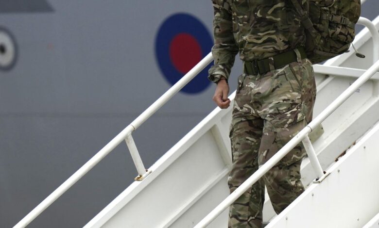 Na snímku: Člen britských ozbrojených sil, 16 Air Assault Brigade vysílá RAF Voyager Aircraft po návratu z Kábulu v roce 2021
