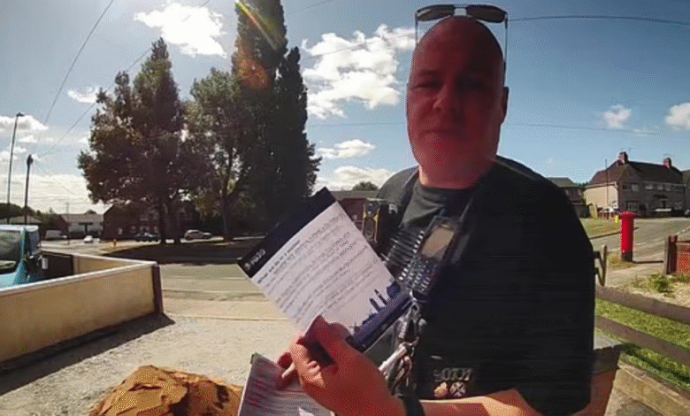 Policejní důstojník byl zaznamenán na záběrech zvonku, zatímco při návštěvě „varujte“ rezidenta o účasti na protestu proti nelegálním migrantům