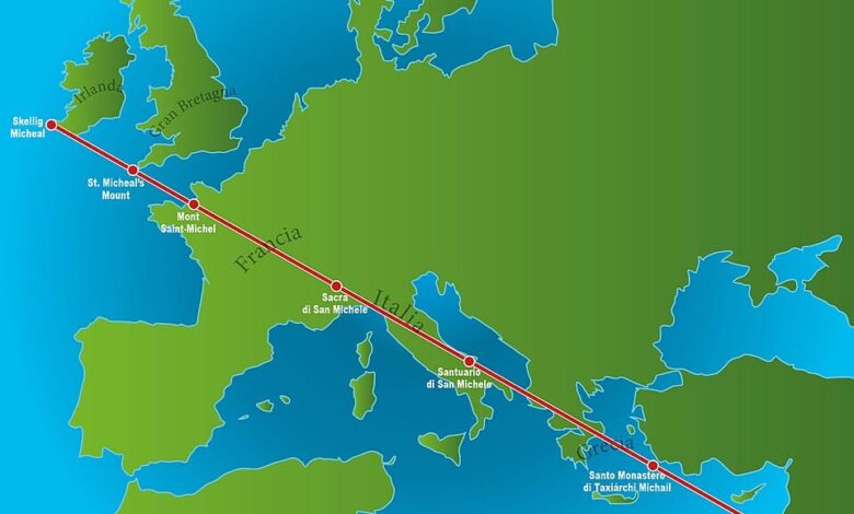 Jádrem příběhu této linie je posloupnost míst – včetně přílivových ostrovů – kde oddanost archanděla Michaela zakořenila: Skellig Michael Off Ireland’s Atlantic Fringe, St. Michael’s Mount v Cornwallu, Mont -Saint -Michel v Grel -Island, monasteizová island, monasteritis, monasteritis, monasteritis, monasteritis, monasteritis, monasteritis, monasteritis, monasteritis, monasterská michel v monasterském michelu, montánsko -michel, montánsko -michel, montánsko -michel na gargano. Symi a Mount Carmel na pobřeží Levantine na Středním východě.