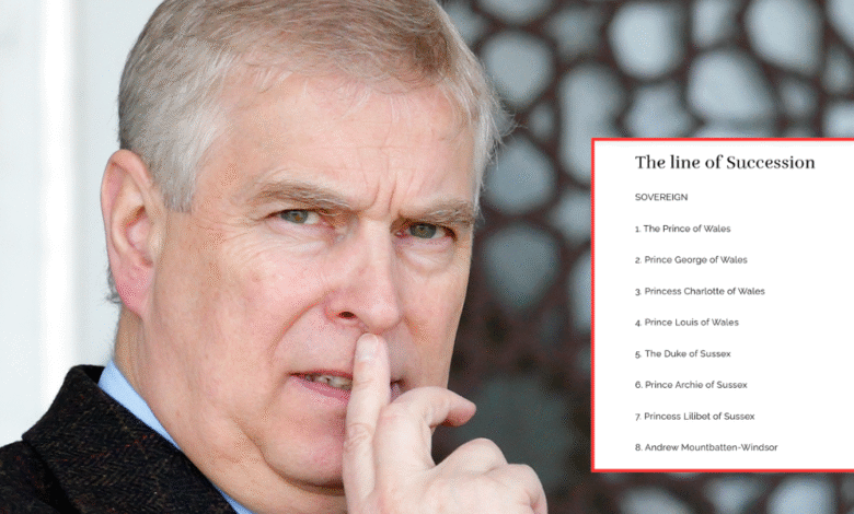 Oficiální webové stránky královské rodiny byly upraveny tak, aby zobrazovaly Andrewa Mountbatten-Windsora na osmé pozici na nástupnické stránce, čímž bylo odstraněno jeho předchozí označení vévoda z Yorku.