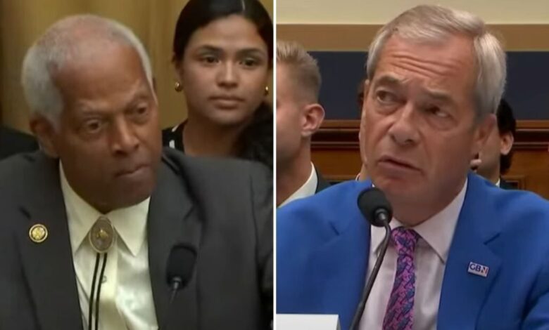 Nigel Farage se v úterý střetl s kongresmanem amerického demokrate během svědectví o svobodném projevu.