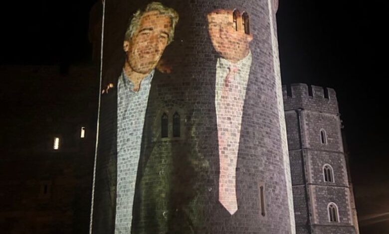 Protestující projektují obrazy Potus a Jeffrey Epstein na hrad Windsor