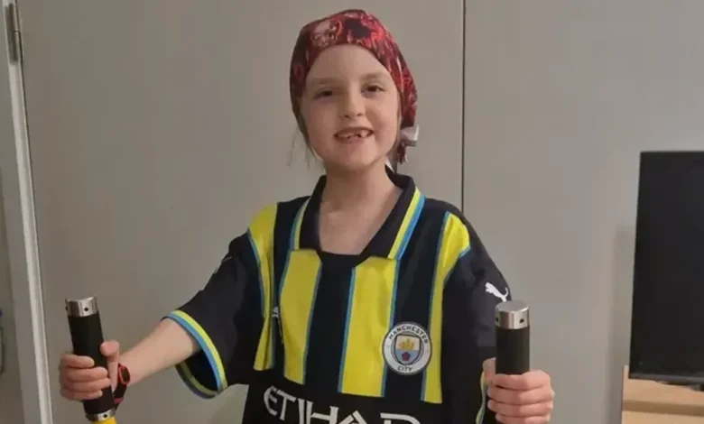 Osmiletá dívka statečně bojuje proti rakovině po dobu 18 týdnů, protože jejím rodičům se podařilo získat přes 60 000 liber za transplantaci jater.