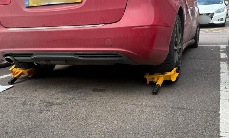 Řidič dostal pokutu za nezaplacení parkovacích lístků a násilné odstranění svorek vozidla