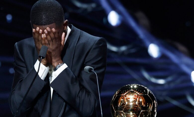 Dembele obdržel Ballon d’Or od bývalého vítěze Ronaldinho a roztrhl se během jeho akceptačního projevu, ve kterém požádal svou matku, aby se k němu připojila na jevišti.
