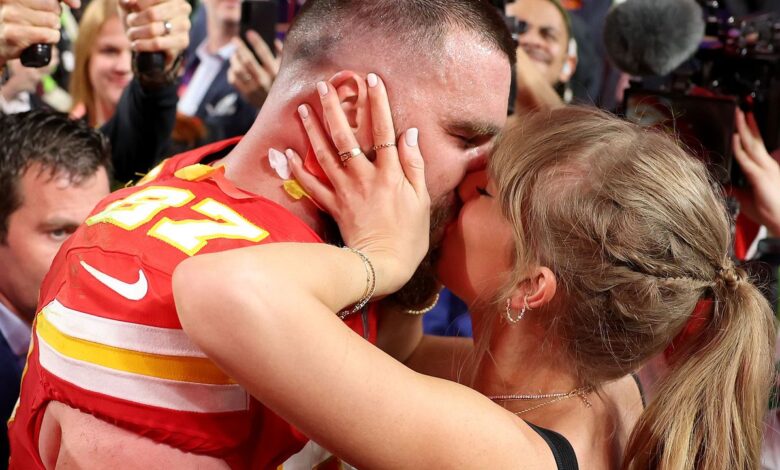 Dává to smysl, že Kelce by udržoval tento pruh vystoupení Eras Tour. Byla to důležitá součást jejich příběhu o původu. V červenci 2023 viděl Swifta ve svém adoptivním rodném městě Kansas City a pokusil se zastřelit svůj výstřel s tehdejším držením tím, že na něm dodal náramek na korálkový přátelství. Nefungovalo to, zasténal v epizodě Nové výškyPodcast, který spolubože s bratrem Jason KelceŘekla: „Nesetkala se s nikým, nebo alespoň se mnou nechtěla potkat, takže jsem to vzal osobně. Ale byla to neuvěřitelná show.“ To se zjevně věnovalo Swiftově pozornosti. Jak odhalila v Rozhovor s ČAS„To vše začalo, když mě Travis velmi rozkošně oblékl na jeho podcast, což jsem považoval za kovový jako peklo.“
