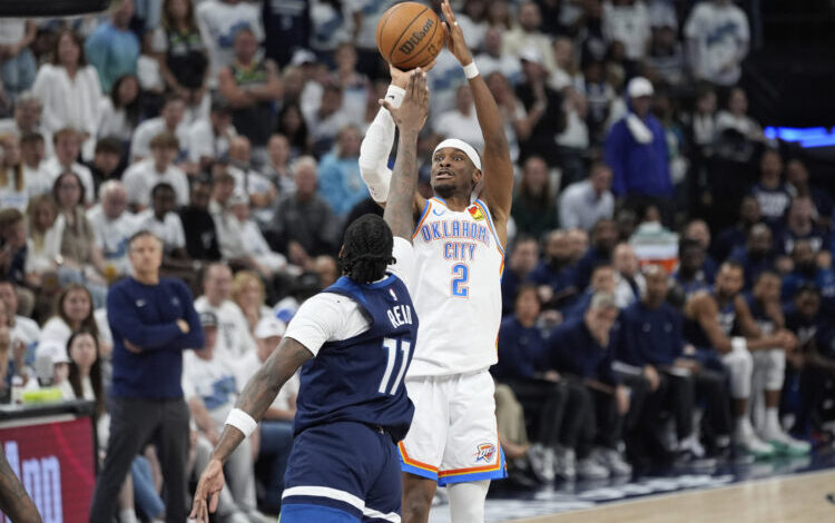 Poté, co v těchto prvních šesti silničních hrách v těchto play-off NBA střílel pouhých 28% z 3-bodového rozsahu, Thunder šel 16 za 37-namáhal vlky obranu se všemi obtížemi, které Gilgeous-Alexander v sobotu znovu představil.