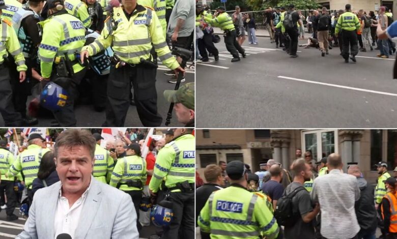 Video novinář GB News Dougie Beattie zabil policii za „velmi špatné rozhodnutí“, které nechalo důstojníky chycené mezi nepřátelskými davy.