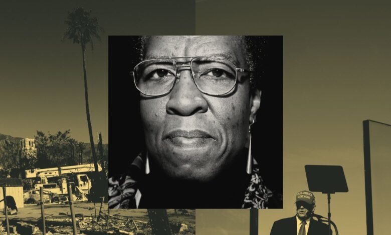Stejně jako u mnoha lidí, kteří nedávno přečetli Butlerovu práci-a novou literární biografii Butlera, Pozitivní posedlost: Život a časy Octavie E. Butler Susana M. Morris byla vydána tento měsíc – Worley byl znepokojen znepokojivou přesností série. Butler byl spisovatel sci -fi narozený v Altadeně – jeden z komunit v Los Angeles County Devastované ohněmi – a její Podobenství Série stárl téměř příliš dobře, s živými scénami z knih vyskočily ze stránky a do reality děsivou rychlostí.