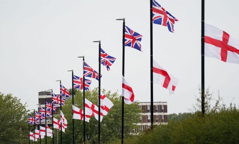 Vlajka Spojeného království a vlajka St. George byla postavena po celé Velké Británii v rámci operace Raise the Colors (Stock Pic)