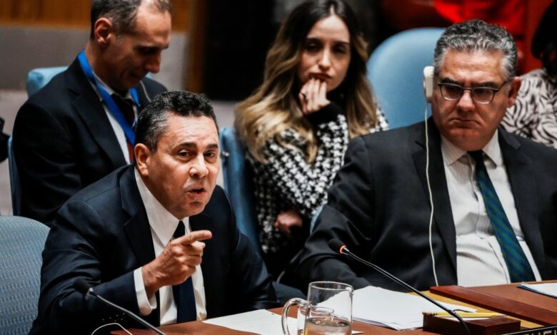Venezuelský velvyslanec při OSN na zasedání Rady bezpečnosti OSN odsuzuje americké vojenské údery a námořní blokádu.