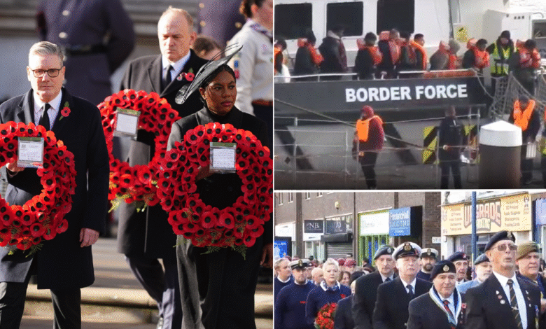 Veteráni ozbrojených sil odsoudili příchod stovek migrantů z Lamanšského průlivu na „posvátný den památky“.