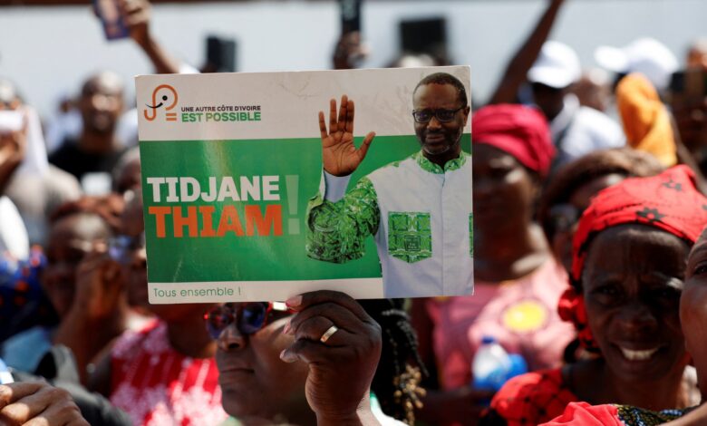 Kampaň Tidjane Thiama byla zastavena, protože prezidentští kandidáti nesmějí mít dvojí občanství.