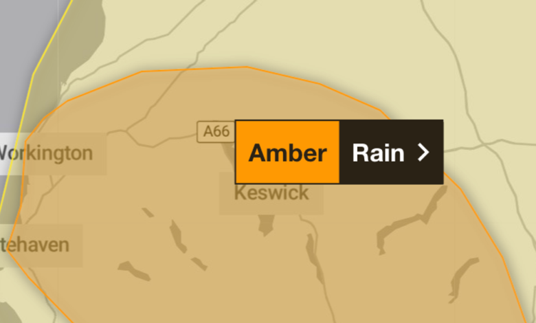 Met Office vydal řadu jantarových a žlutých varování před počasím, protože silný déšť sužuje severozápad Anglie, Skotsko, Severní Irsko a části Walesu během víkendu a příštího týdne.
