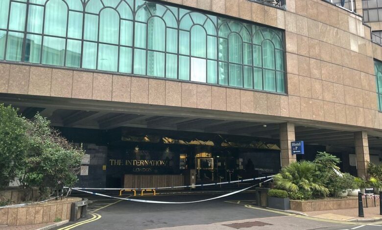 Policejní páska a osamělé vozidlo viděly GB News v hotelu Britannia