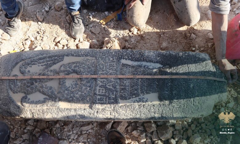 2 000 let STELE s řeckým nápisem objeveným v Manbij v Sýrii