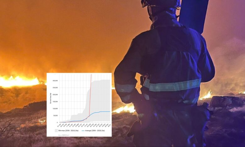 Španělské požáry již letos zničily téměř 4 000 čtverečních kilometrů – bezprecedentní postava šestkrát vyšší než celostátní průměr.