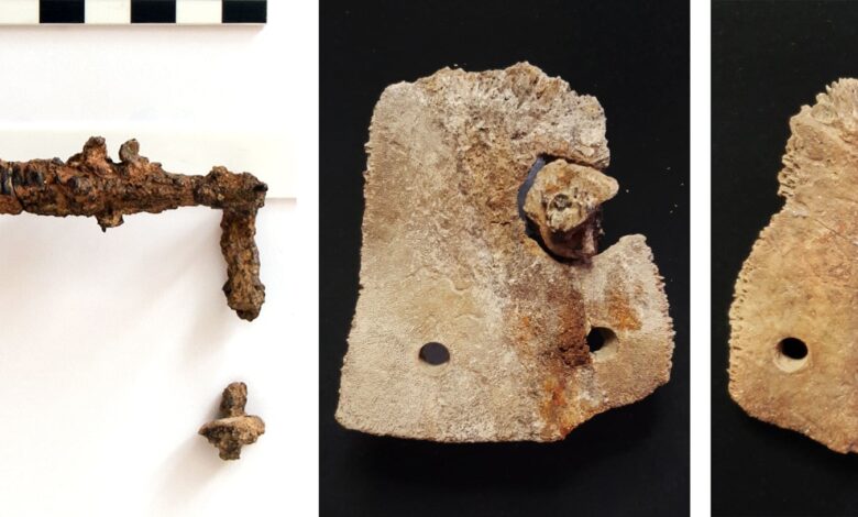 Další výzvou bylo odstranění tvrdé pevné vrstvy půdy a solí z keratinových destiček, které byly křehké a měly tendenci se odlupovat, degradovat, smršťovat, deformovat, zplošťovat nebo být napadeny mikroorganismy. Železné části starověkého nástroje byly silně zkorodované.
