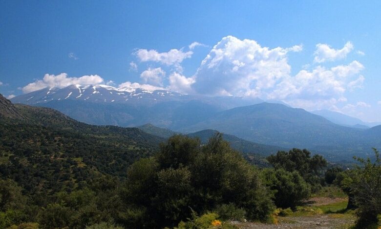 Mount Ida, známá místním obyvatelům jako psiloritida, je Creteův nejvyšší vrchol a drží centrální místo v Řecká mytologie Protože je to místo, kde podle legendy titaness Rhea skryla svého kojeneckého syna Zeuse před otcem Cronusem. Příběh Zeusova přežití z dětství na hoře Ida je základním vyprávěním pro celý olympionický pantheon.